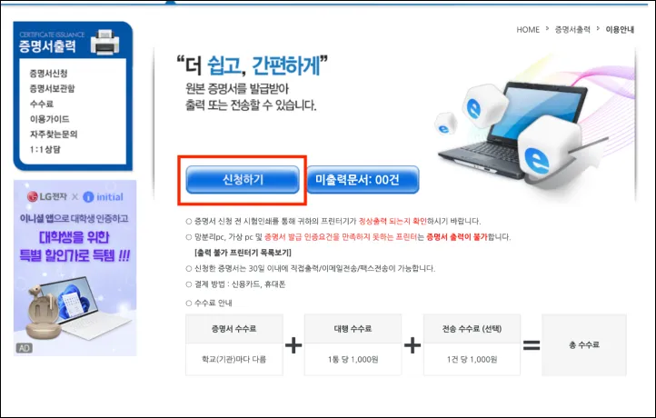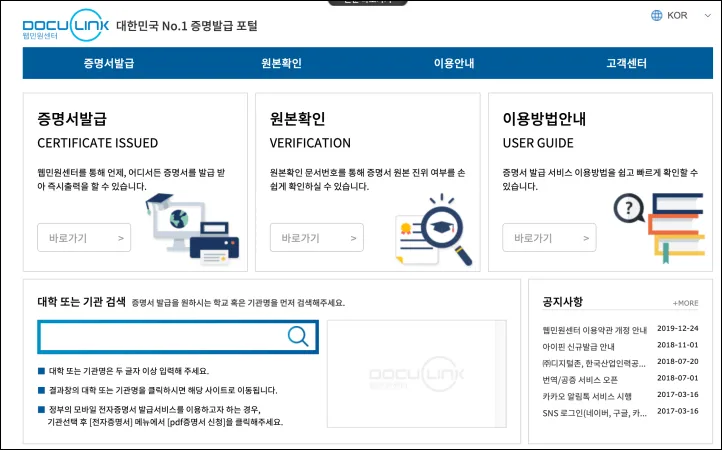 대학증명발급 웹민원센터를 이용한 졸업증명서 인터넷 발급 방법