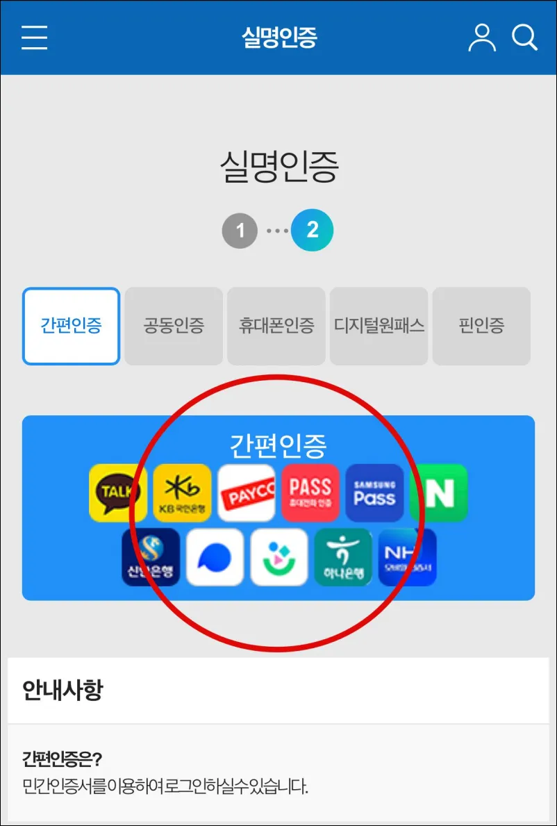 그리고 실명인증을 진행하는데 공인인증 또는 간편인증을 통해 진행합니다.