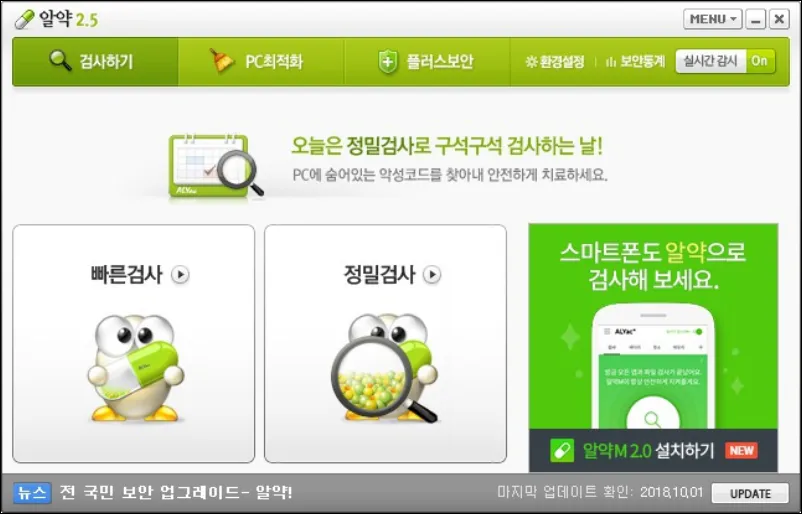 알약은 V3와 더불어 우리나라에서 많은 사용자 층을 가지고 있는 보안 소프트웨어입니다.