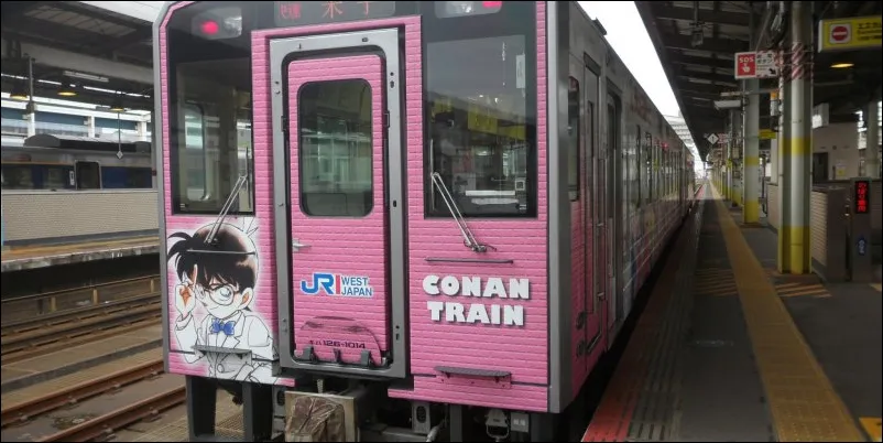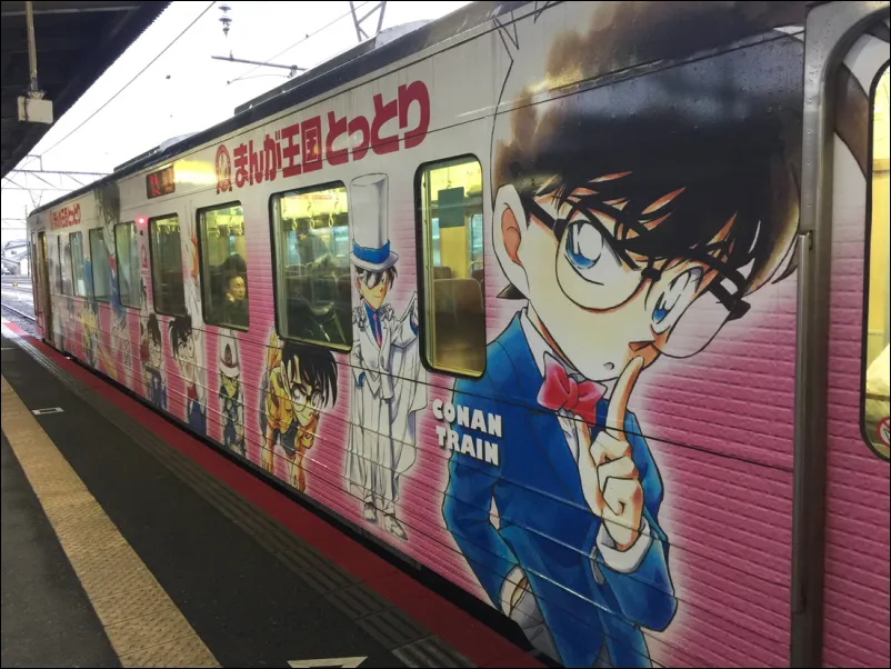 우리나라에서도 익히 알려진 만화 "명탐정 코난"의 작가 아오야마 고쇼의 고향이 돗토리 현이라고 합니다. 그래서 요나고~돗토리 간 운행되는 기차에 명탐정 코난 만화그림이 랩핑되어 있다고 하는데요!