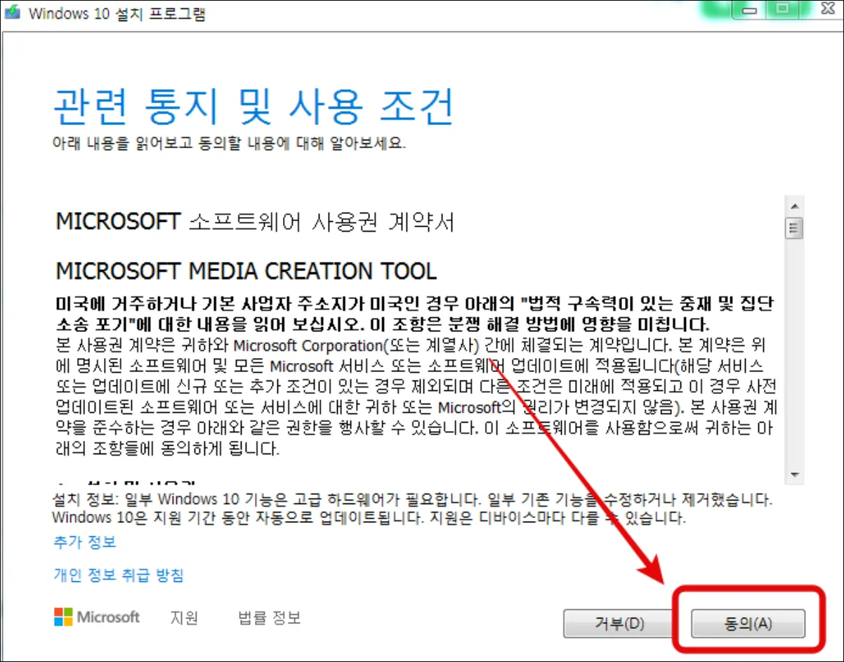 다운받은 MediaCreationTool 파일을 더블 클릭해서 실행합니다(오류 발생 시 본문 하단의 팁을 참고해 주세요)