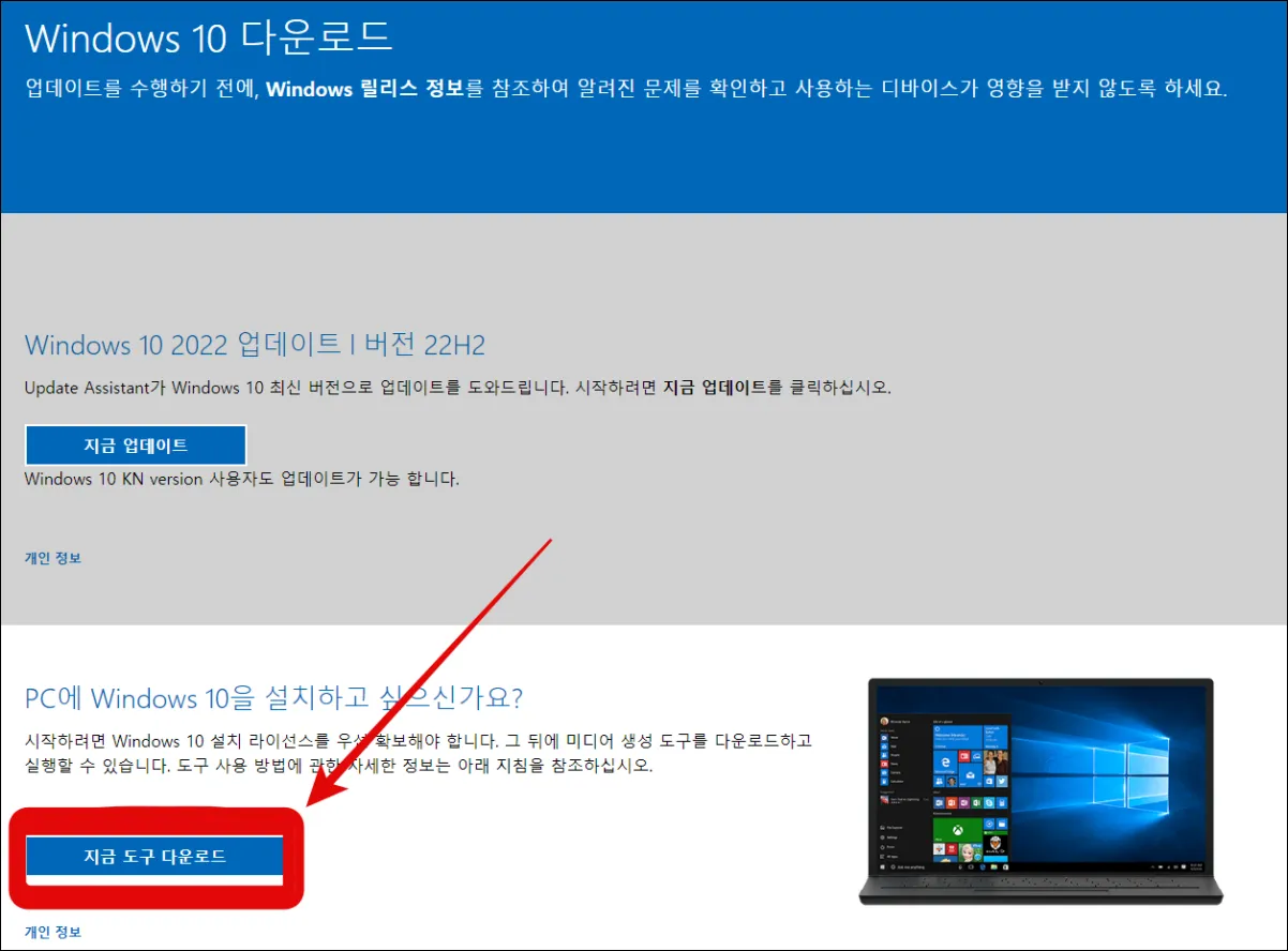 Step 2. 윈도우 10 설치 도구 다운받기