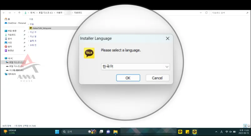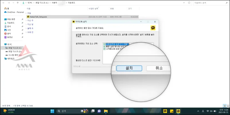 바탕화면으로 이동해서 다운로드 폴더로 이동해서 KakaoTalk_Setup.exe 파일을 더블 클릭하면 설치가 진행돼요~