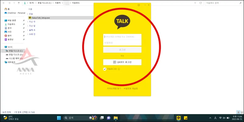 이렇게하면 옛날에 '네이트온'처럼 카카오톡이 실행되면서 화면에 아이디와 패스워드를 입력하라고 해요