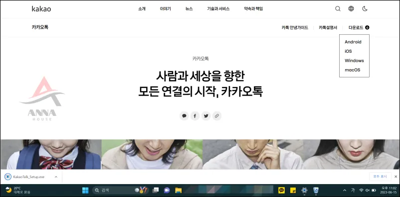 1. 카카오톡 홈페이지 접속