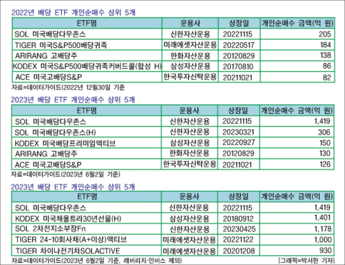 한국판 SCHD ACE, SOL, TIGER 미국배당다우존스 ETF 비교 총평