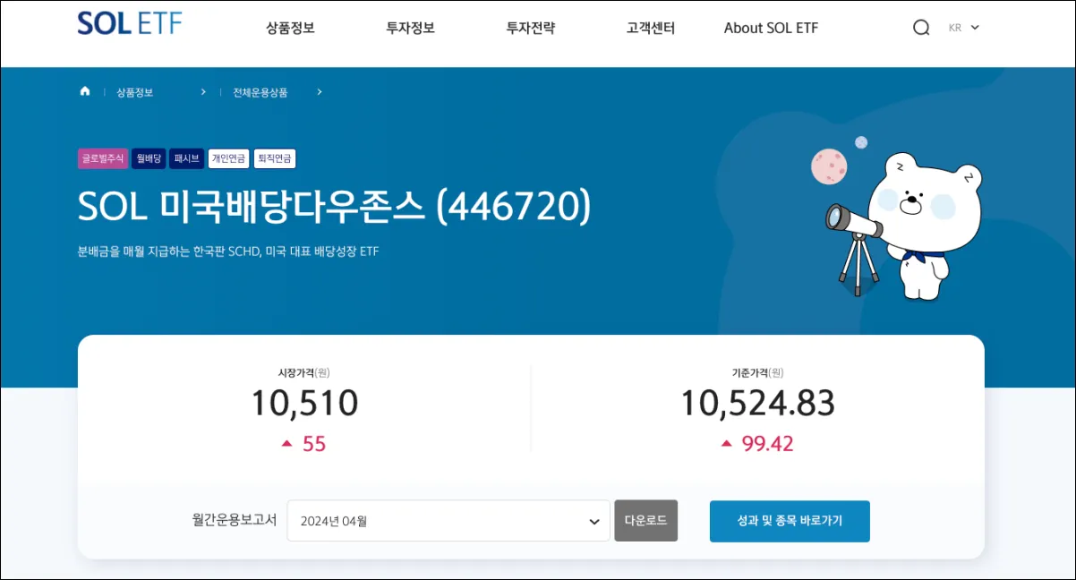 먼저 SOL 미국배당다우존스 ETF의 기본 정보를 살펴보면 다음과 같습니다.