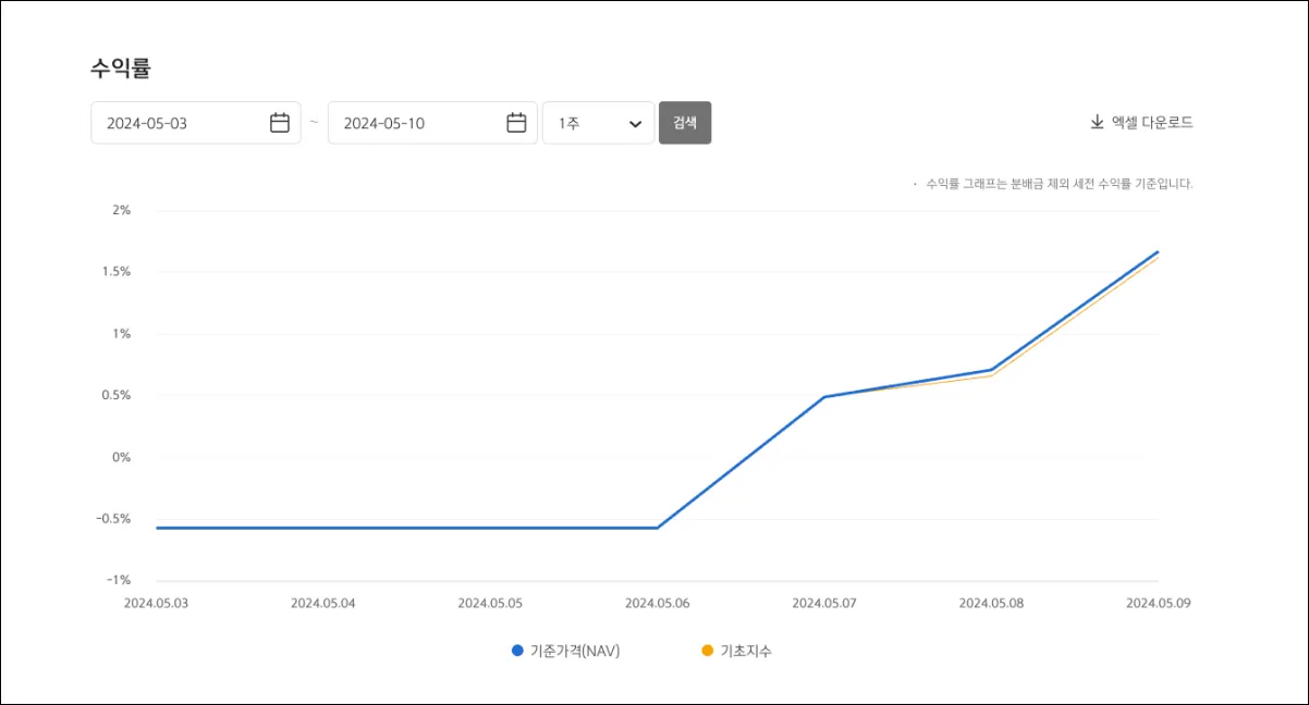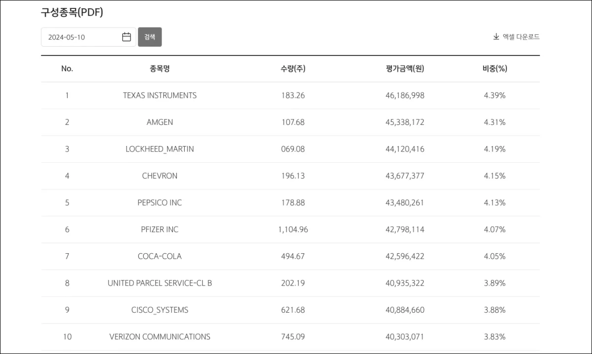 더욱이 0.2239%의 낮은 총 보수율도 장점입니다. 장기투자에 있어 수수료는 수익률에 큰 영향을 미치기 때문이죠.